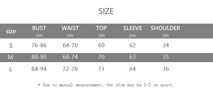 1. Asian sizes are 1 to 2 sizes smaller than European and American people. Choose the larger size if your size between two sizes. Please allow 2-3cm differences due to manual measurement. 2. Please check the size chart carefully before you buy the item, if you don't know how to choose size, please contact our customer service. 3.As you know, the different computers display colors differently, the color of the actual item may vary slightly from the following images.